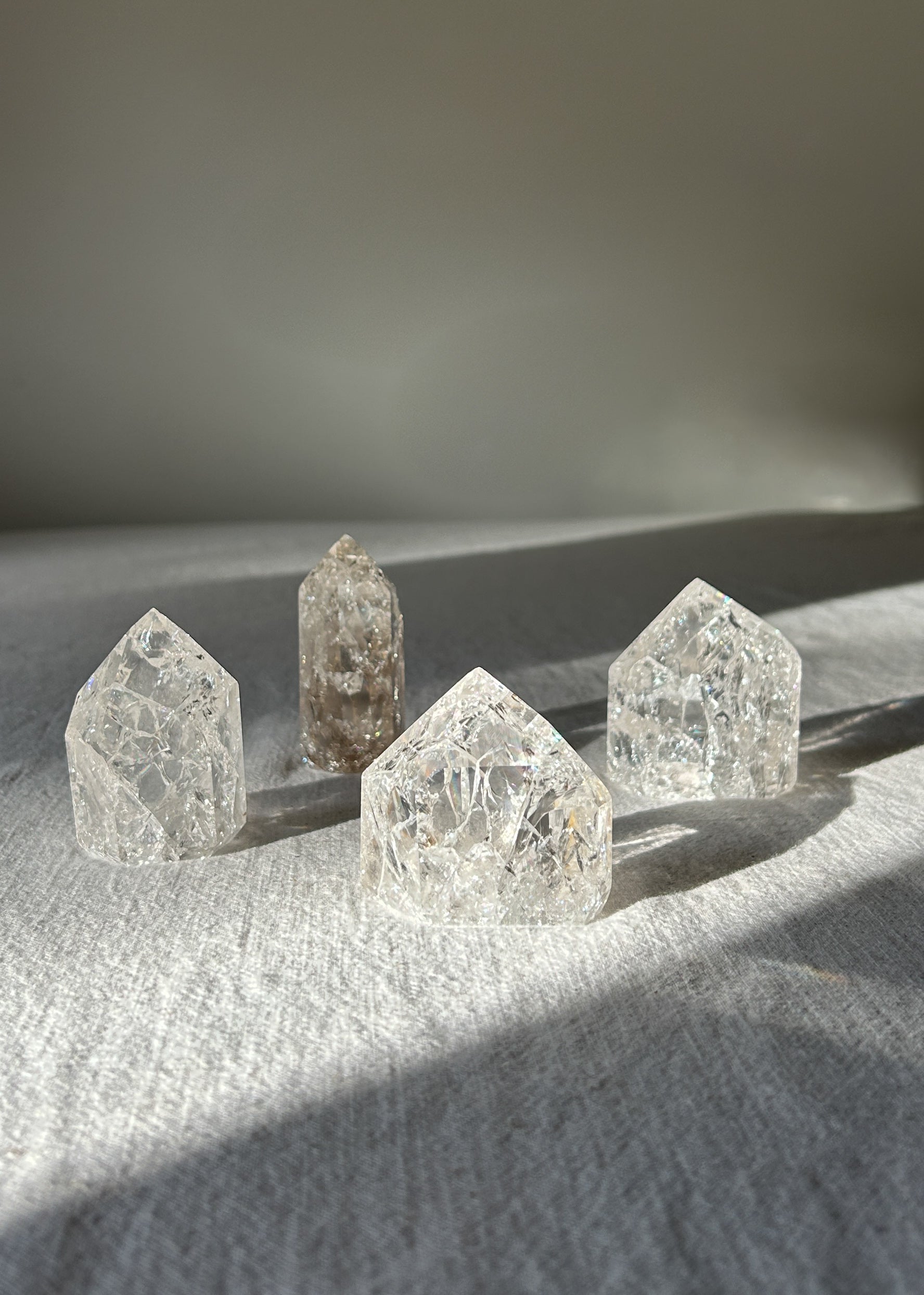 Quartz comes from the Greek word for 'ice' due to it's glacial appearance and cooling properties - thought to cleanse, balance, protect and restore