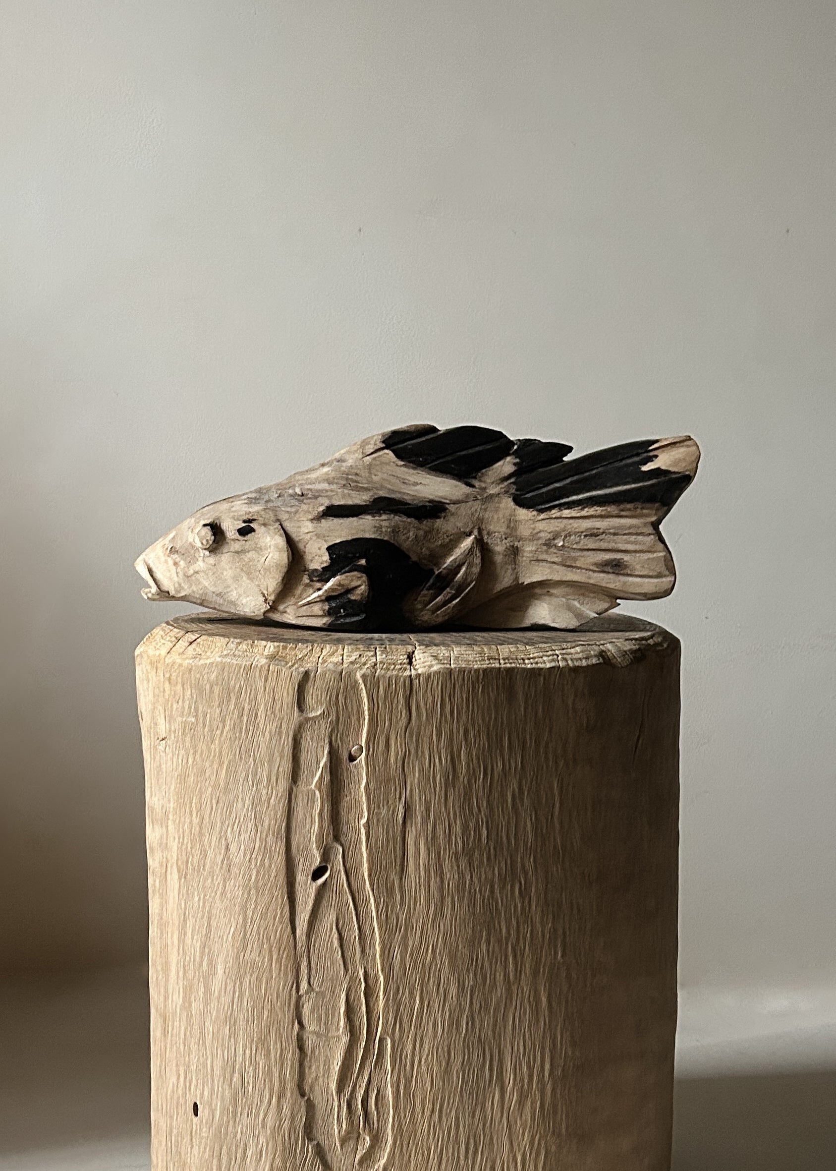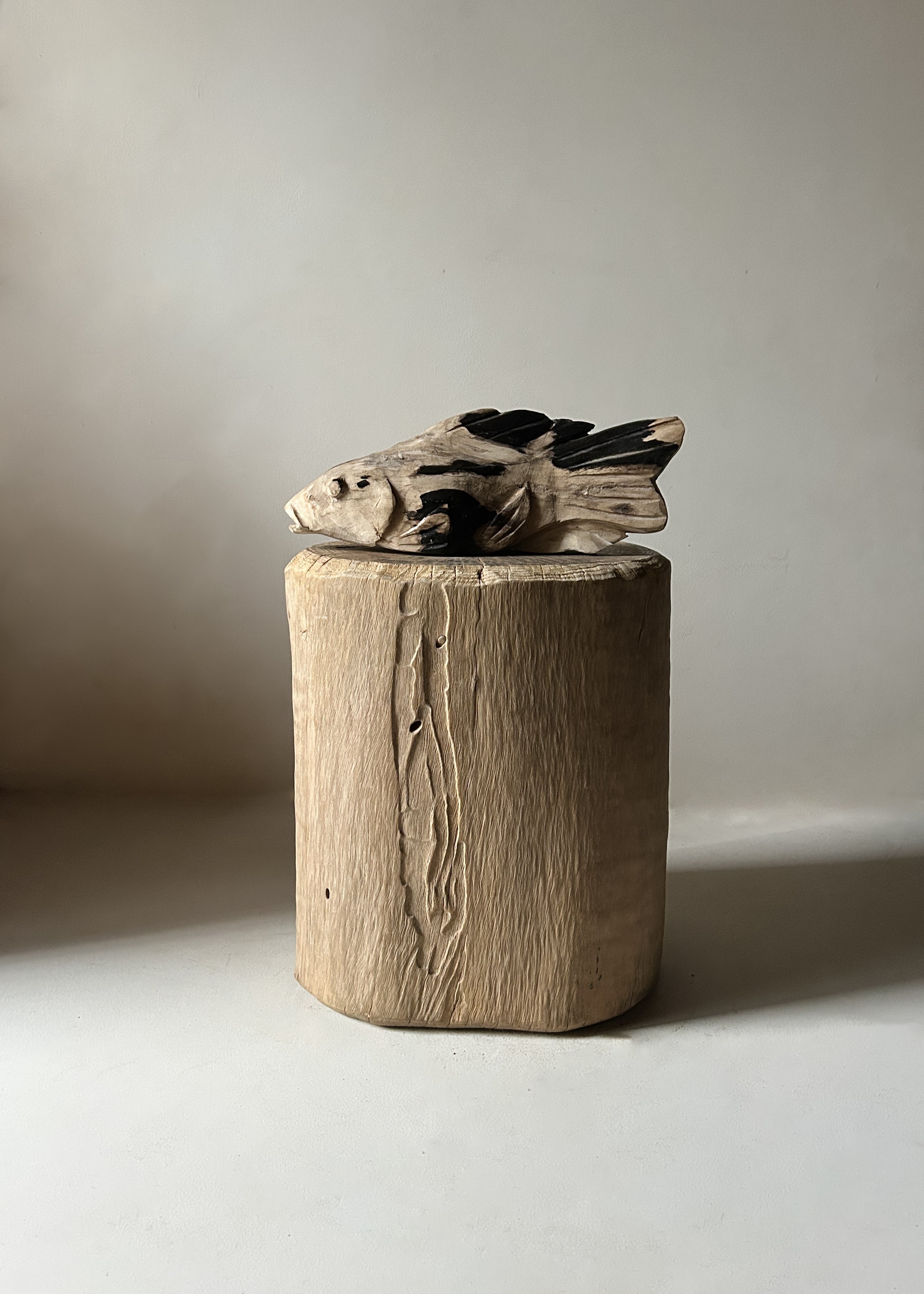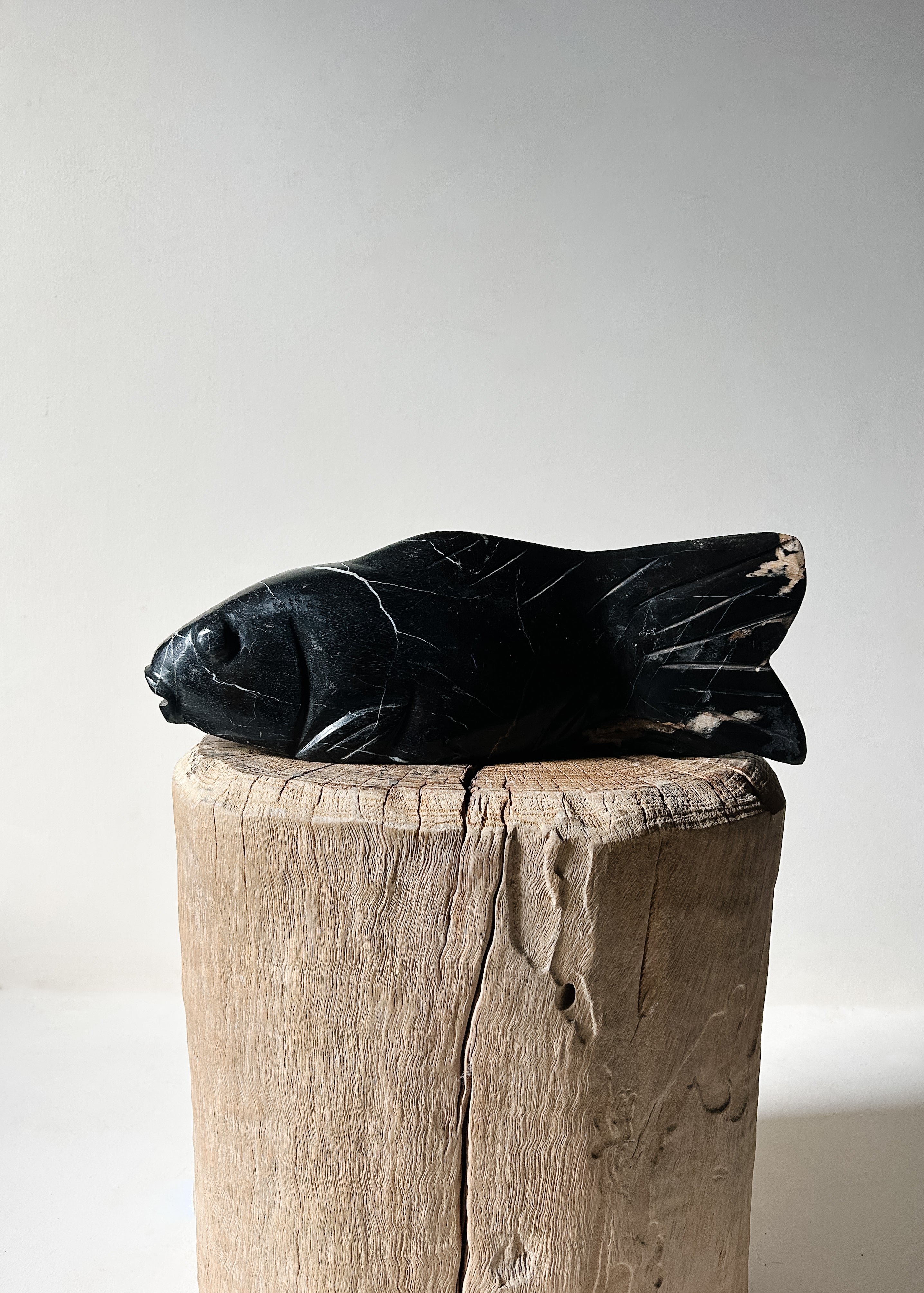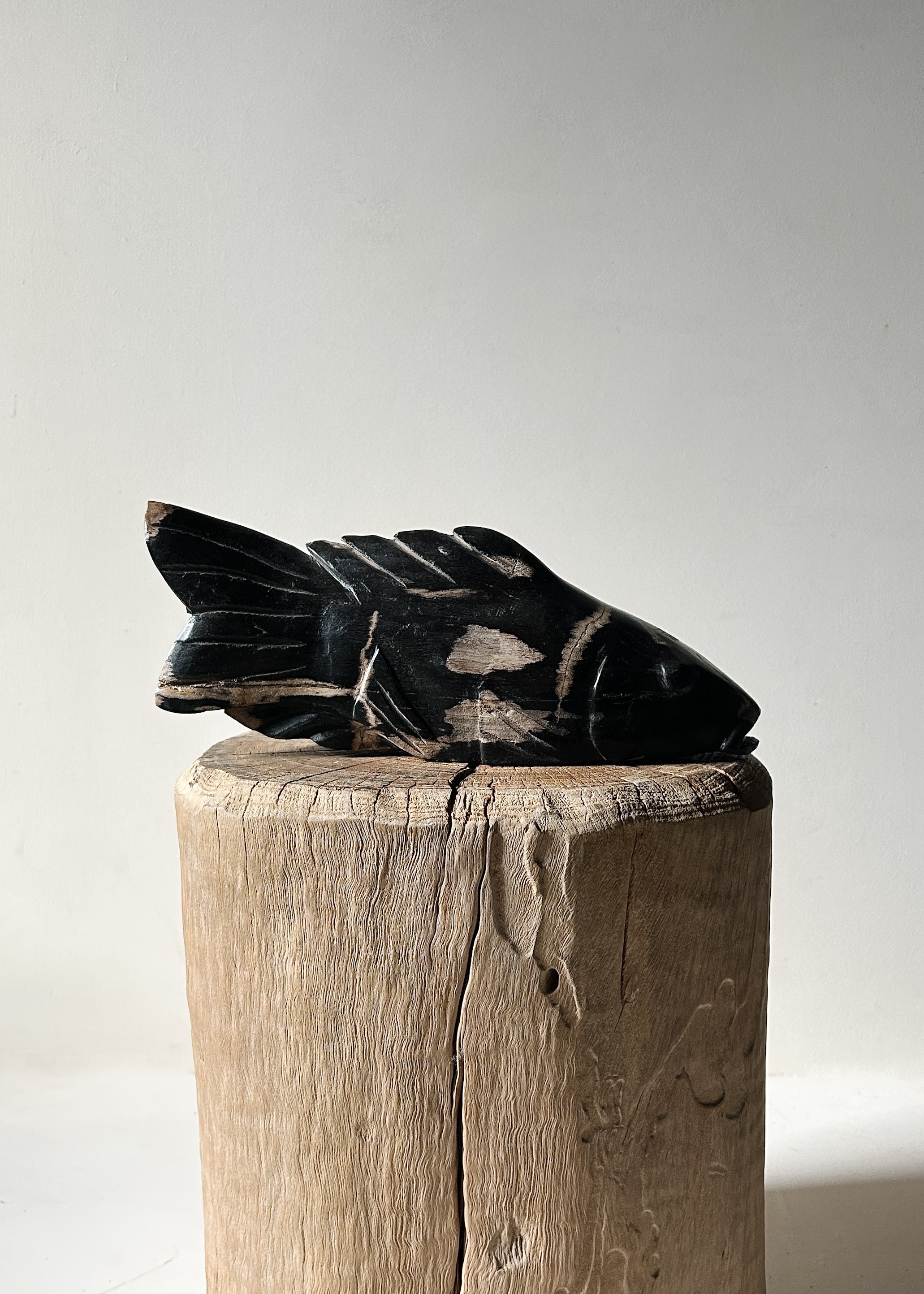 We have sourced a small collection of unique hand carved fish sculpture created from petrified wood, a rare material formed over millions of years as natural wood slowly transforms into stone. Eahh piece retains the organic grain and tonal variation of the original timber while carrying the weight (2kg) and permanence of fossilised rock.