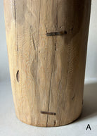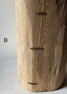 Beautiful salabaged tree stump sections, cut and finished for use as side tables or display pedestals. Each piece is solid and full of character with original cracks, grain patterning and stunning old metal join repairs visible across the surface. Beautifully pale, raw timber that sits in both modern and rustic interiors.