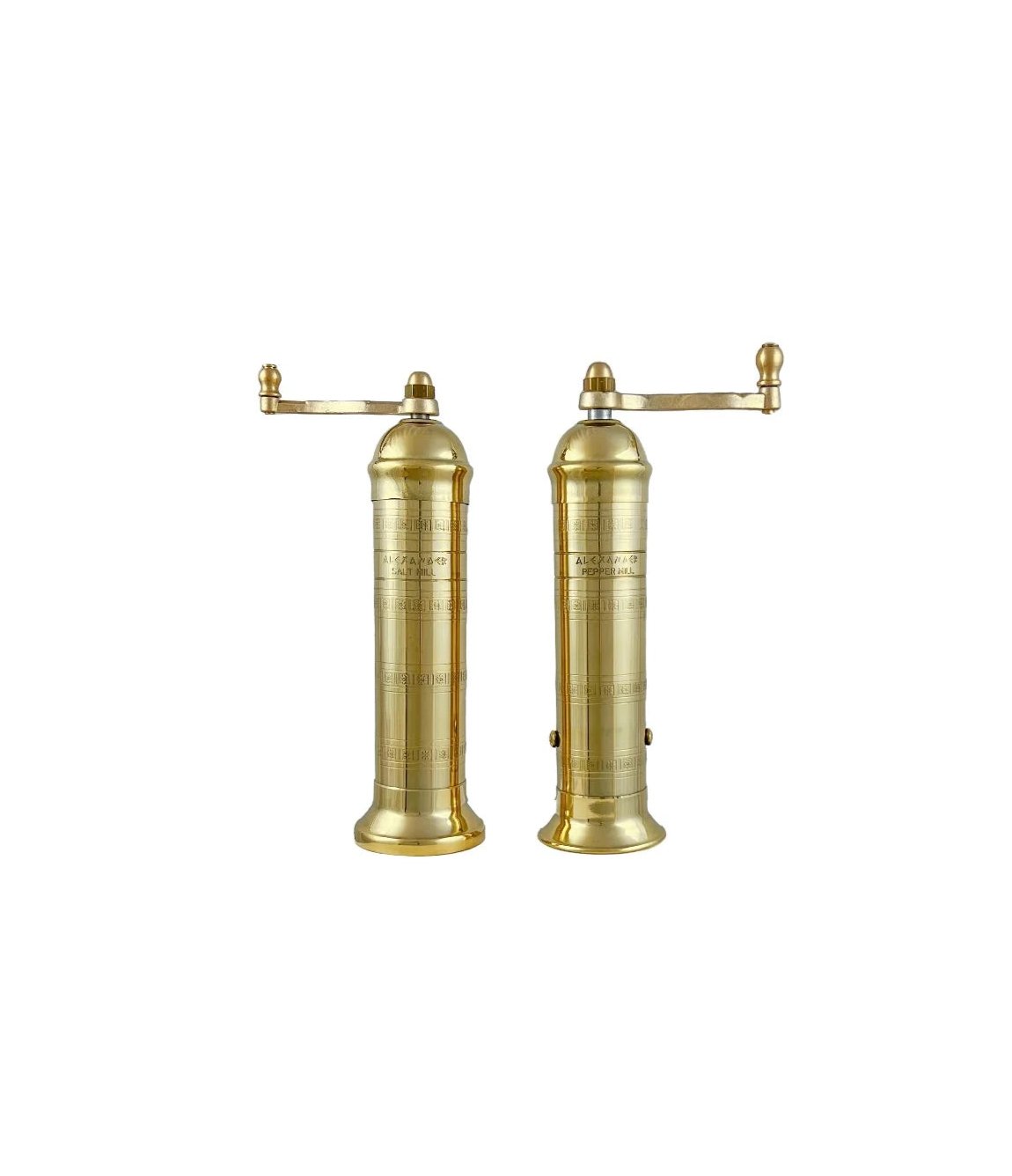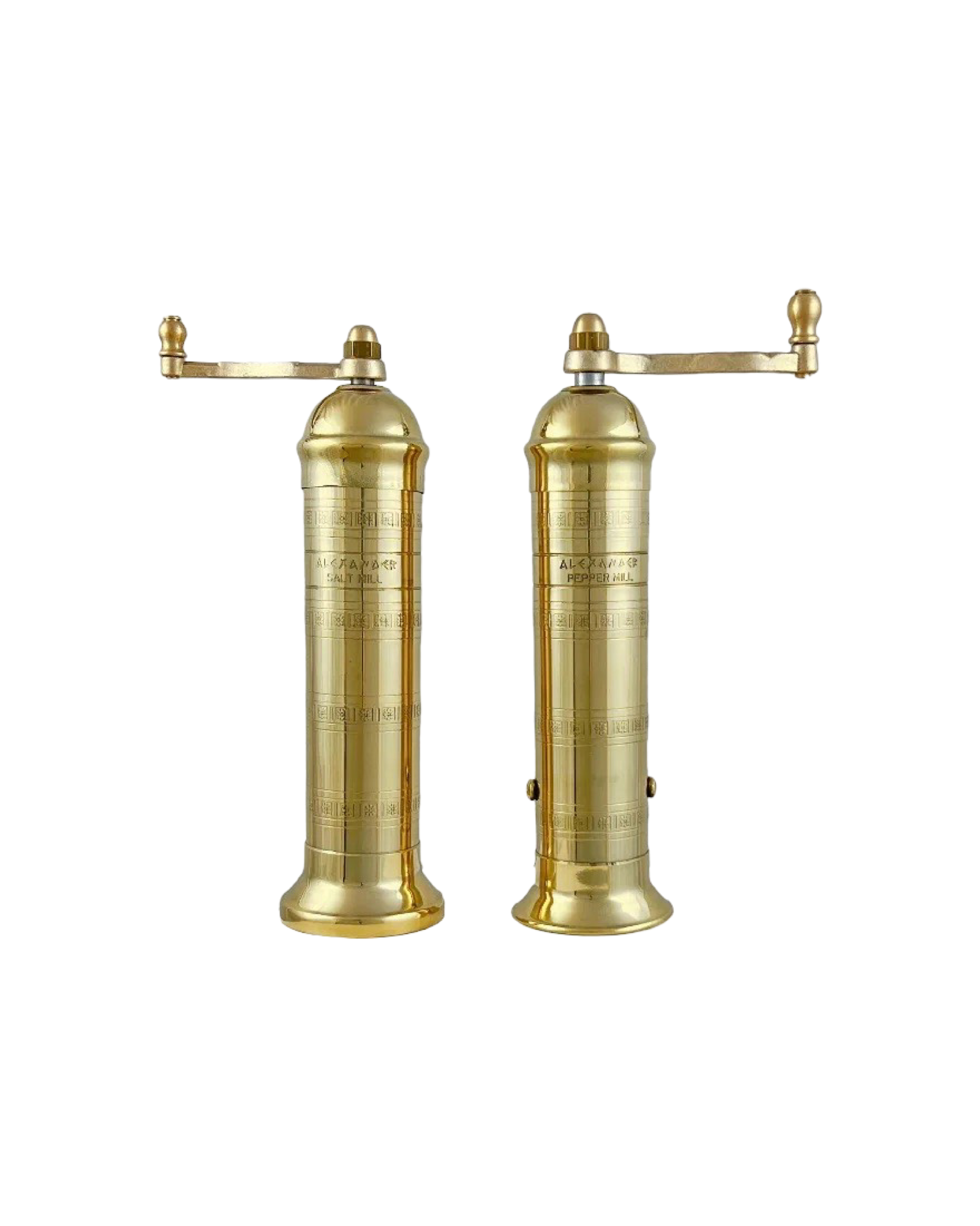 You will find the handle for each stored in the body of the mill. They feature an adjustable grid from fine-to-coarse and can be tightened via the screw at the bottom of the mills. Due to the natural brass material, these mills will age and patina over time. We recommend regular maintenance with brasso if you prefer to keep your mills in new condition.