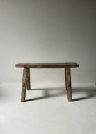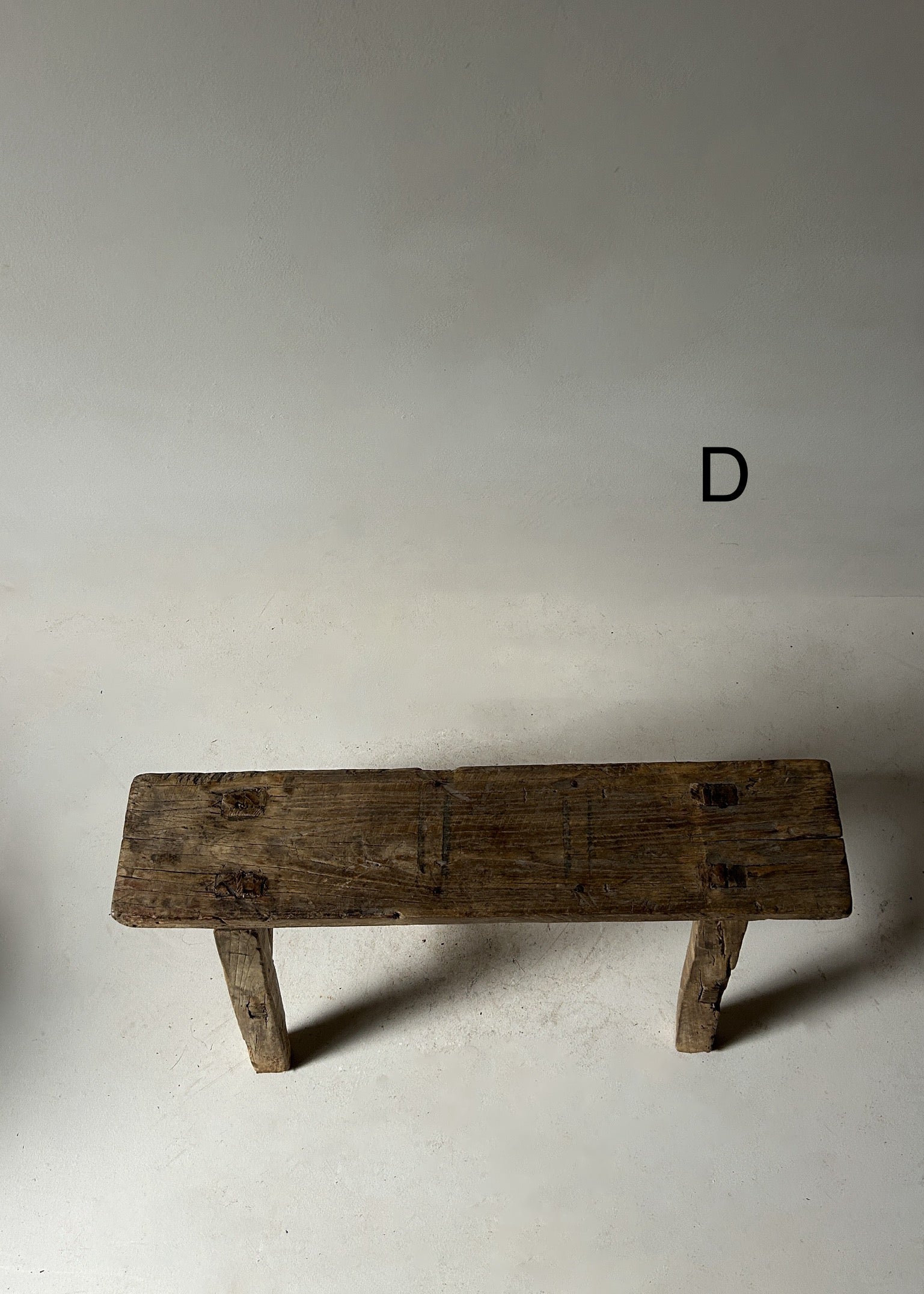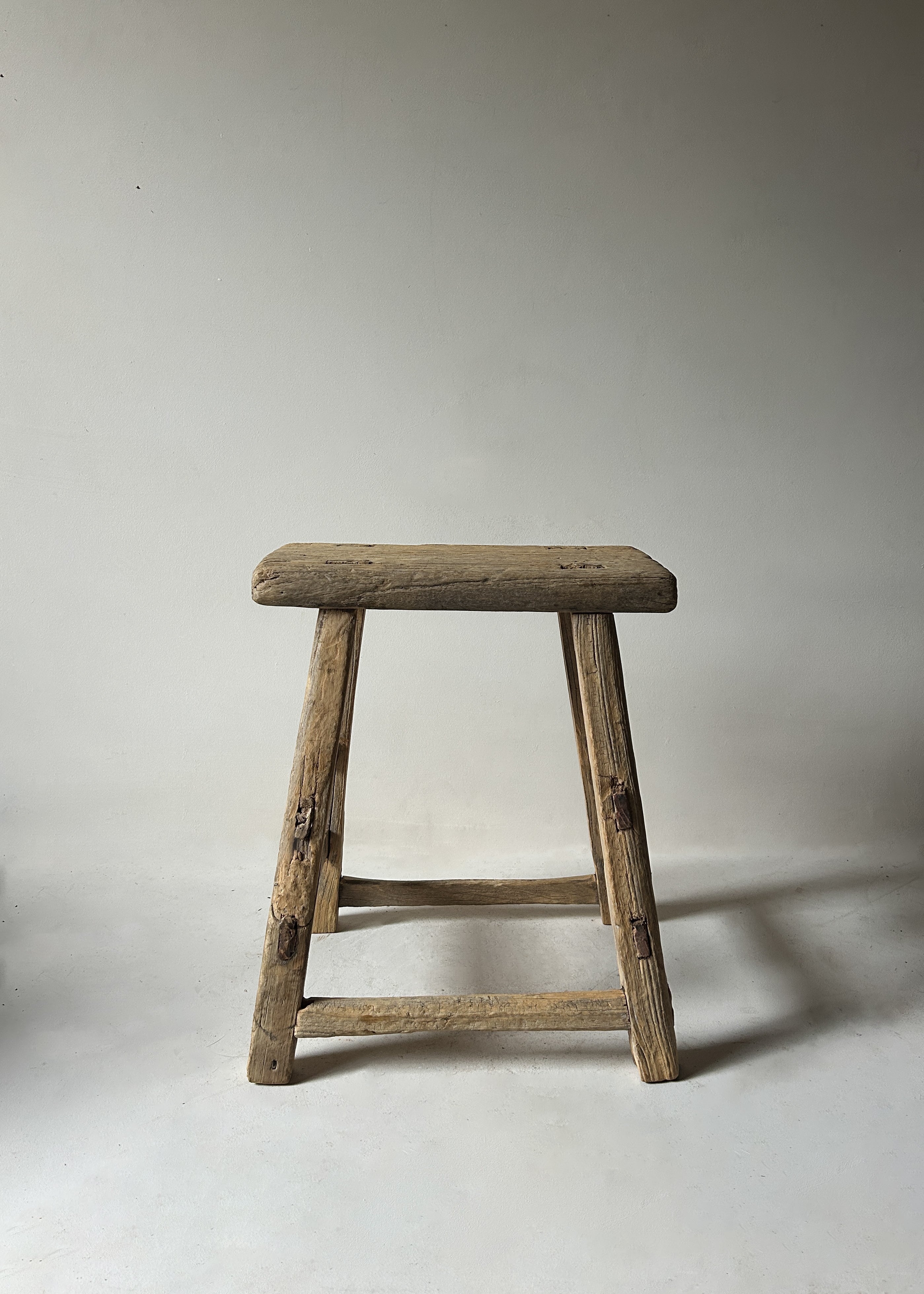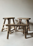 Antique elm stools from rural Shanxi province, originally used as portable seating in countryside homes. Each piece carries years of wear, knotty elm grain and rich tactile texture. These medium sized stools sit beautifully as small low benches or side tables.