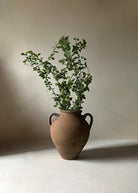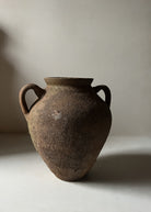 A beautiful earthy antique terracotta olive jar with classic amphora style dual side handles. Vessels like this were traditionally used across Southern Europe and the Mediterranean for storing olives, oil, wine, or grains, and were hand formed from unglazed clay then left to dry in the sun before firing.
