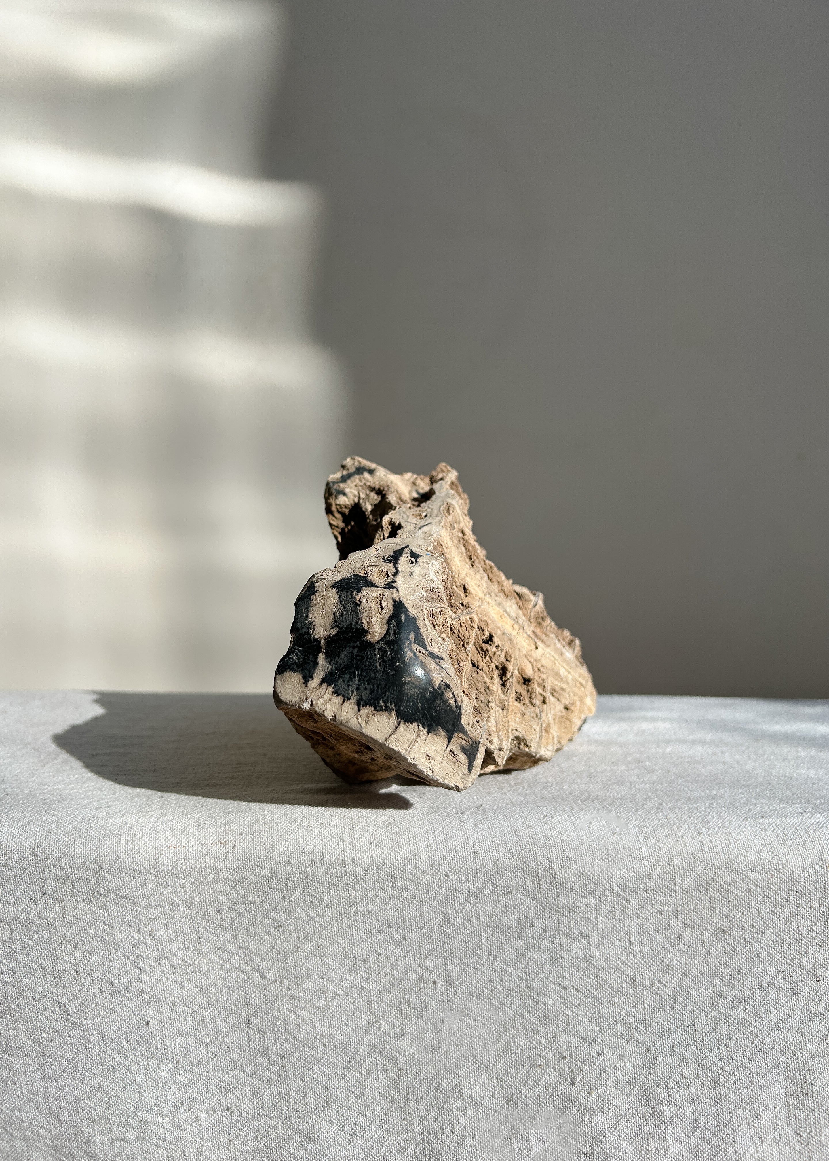 A very special find, an incredible and rare permineralized fossil wood with quartz. This fossil wood contains subtle sparkling quartz and contrasting smooth marble like finish, bringing a beautiful mix of organic texture and intrigue. This exciting find is from the Triassic age, circa 200 million years old.