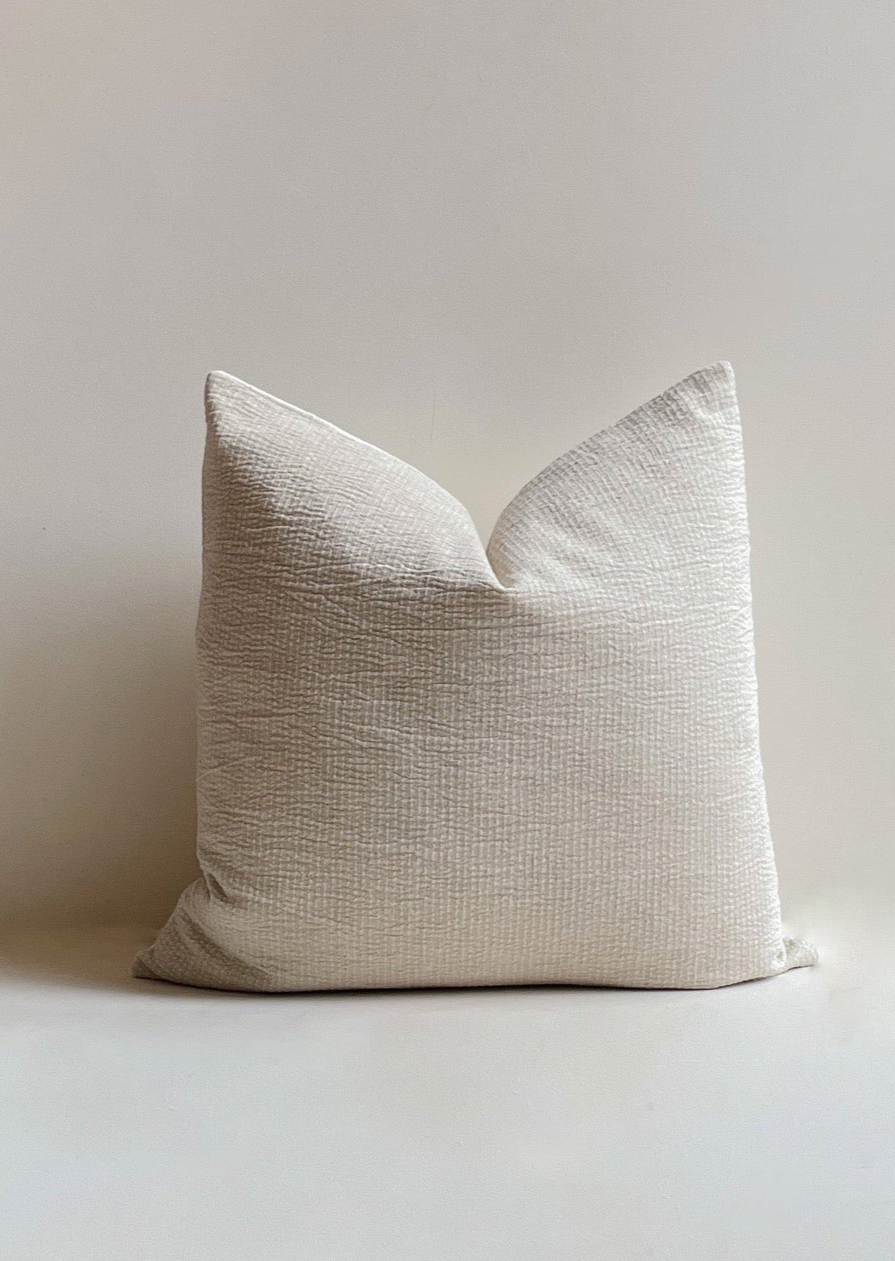 Ayra features a subtle textured stripe against a soft oatmeal natural cotton - the perfect neutral addition to blend seamlessly in any space